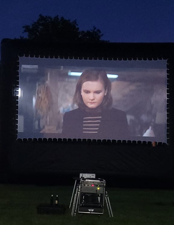Our Extra Large (Outdoor) Inflatable Movie Theatre has a viewable screen of 20’W x 11’H providing guests with an amazing experience. (27’W x 21.5’H x 5’L)